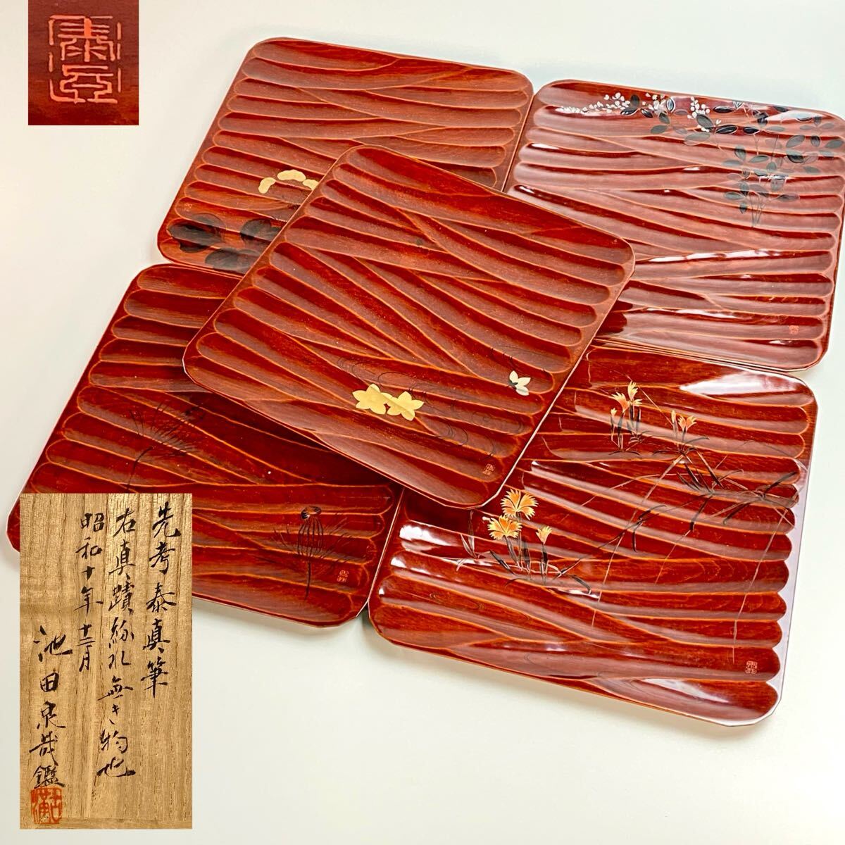 - 。猫夢◆ 池田泰真 五節句繪 吸物膳 27cm 5客 池田泉哉識箱 唐物 骨董 [J2]ちちく
