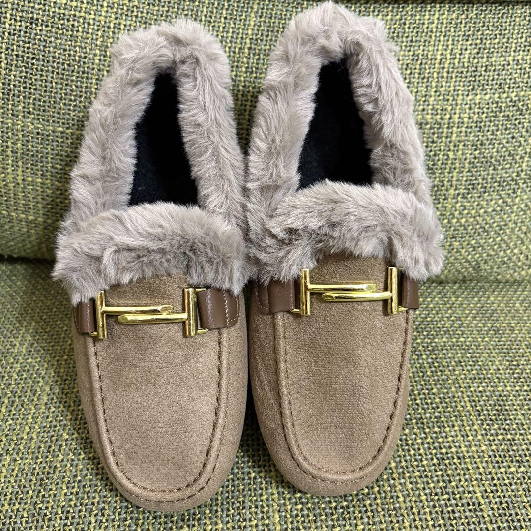 > ブーツ モカシン ファーブーツ ボア フラット 秋冬 裏起毛 フェイクファー ショートブーツ 23.5cm ブラウン ブラック