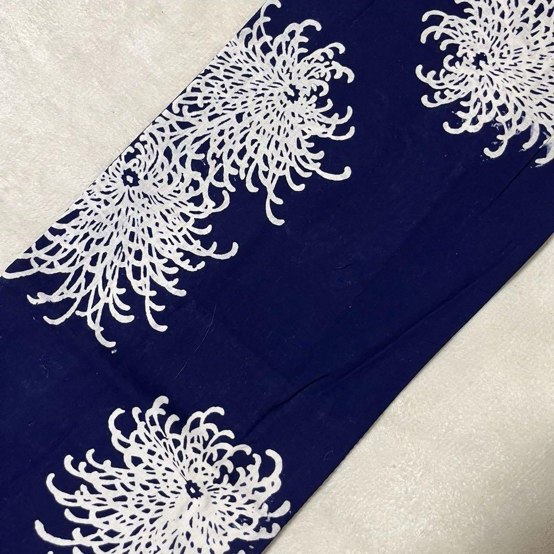 - 浴衣 濃紺 本染 手縫い 菊 丈短め 袖丈長め ゆかた 着用可 敷居あてあり リメイク ハンドメイド 材料
