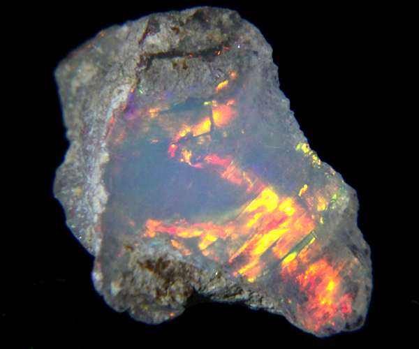 - 【オーロラ】天然ファイアーオパール母岩付き原石 遊色きれい 3.15ct エチオピア【513】