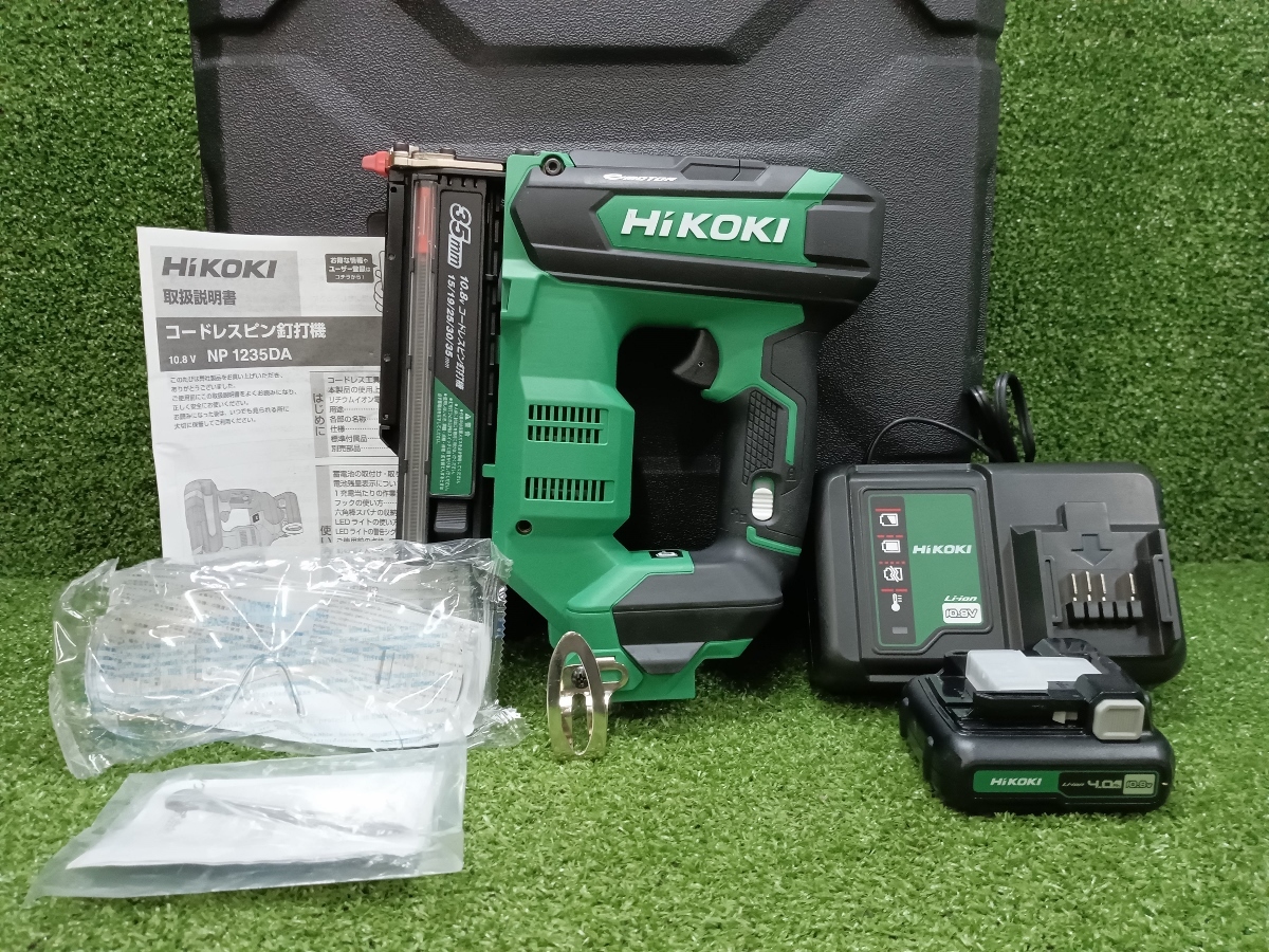 - 中古 HiKOKI ハイコーキ 旧日立工機 10.8V 35mm コードレスピン釘打機 4.0Ahバッテリー 充電器 付 NP1235DA (LS)