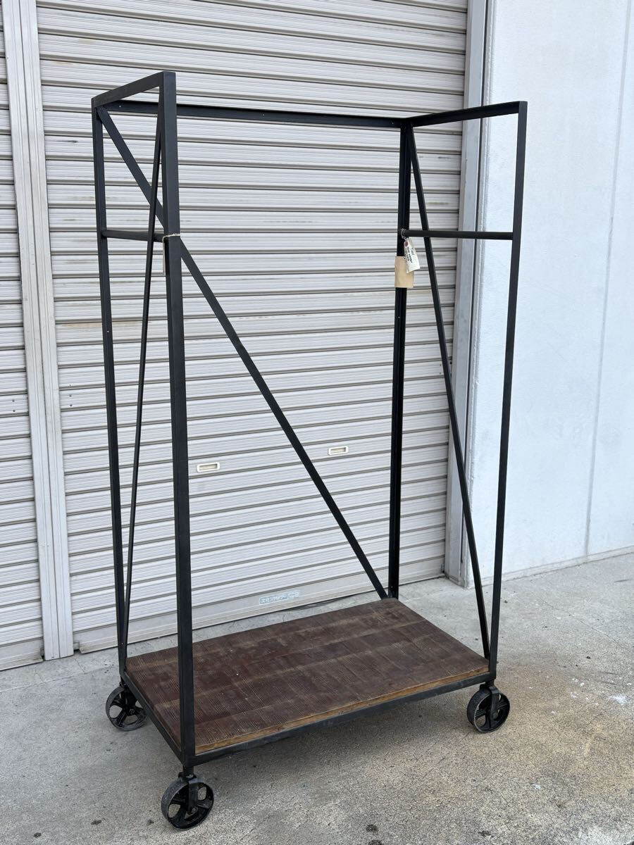 - 【詳細不明】IRON WOODEN CLOTH STAND アイアンラック T001 約幅90×奥50×高さ165cm 東京都より家財便Eランク 直接歓迎【管K102-2509】