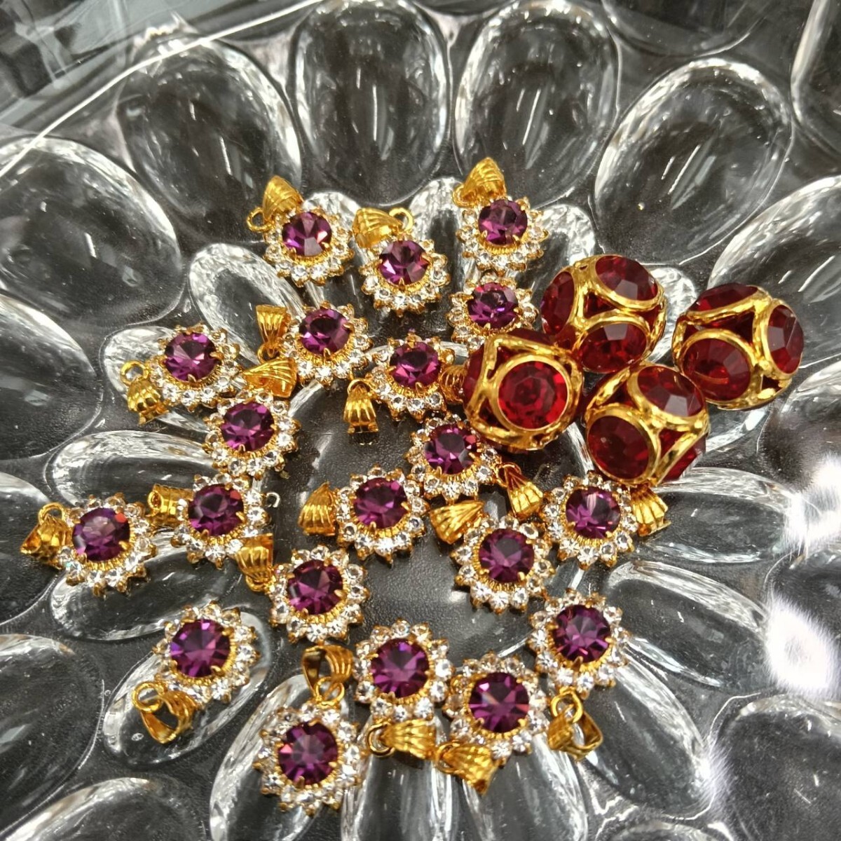 > L347 未使用 SWAROVSKI スワロフスキー ヴィンテージ ルース パーツ トップ 36g 10~13mm オーバル ラウンド 赤 パープル×ゴールド色 B503