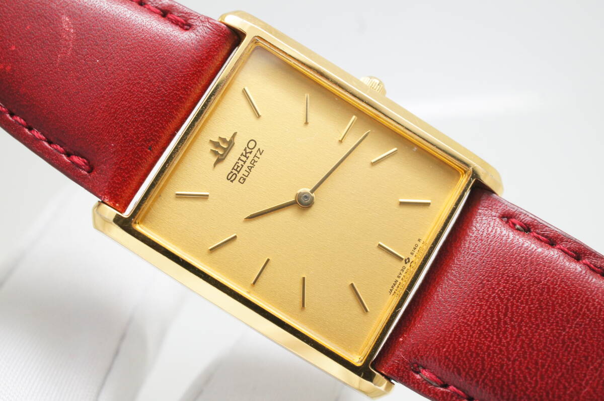 > Z85●作動良好 SEIKO セイコー シャリオ 5Y30-5060 金文字盤 スクエア型 1991年製 メンズ腕時計 ゴールド金 お洒落 クォーツ