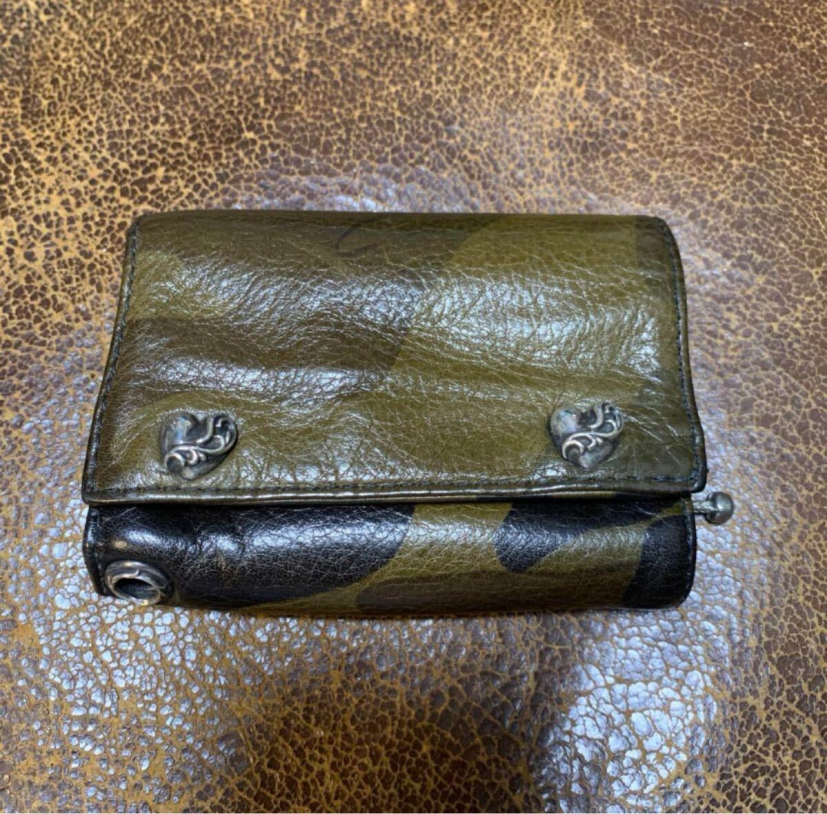 - クロムハーツ 3フォールド ハートボタン レザーウォレット カモフラージュ