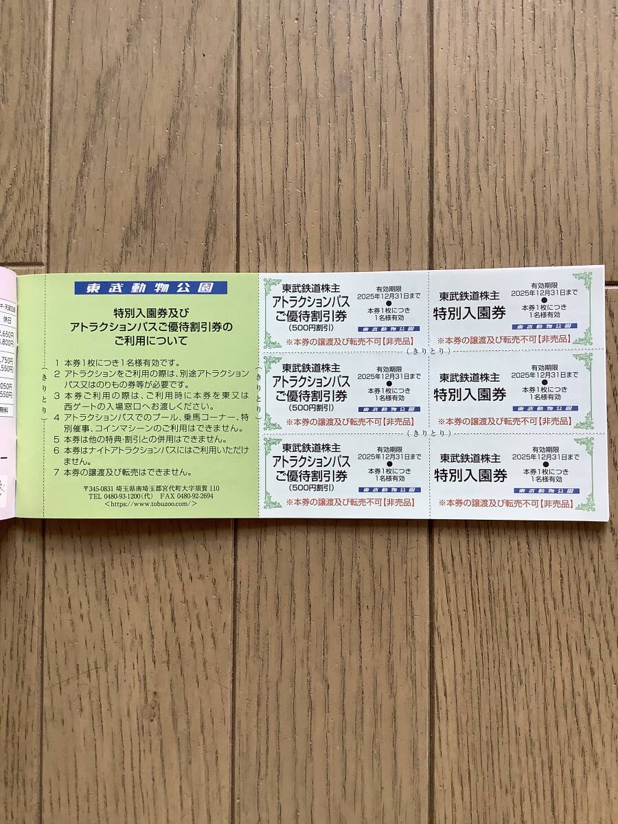 - 東武動物公園特別入園券&アトラクションパスご優待割引券 ◆東武鉄道株主優待券1冊