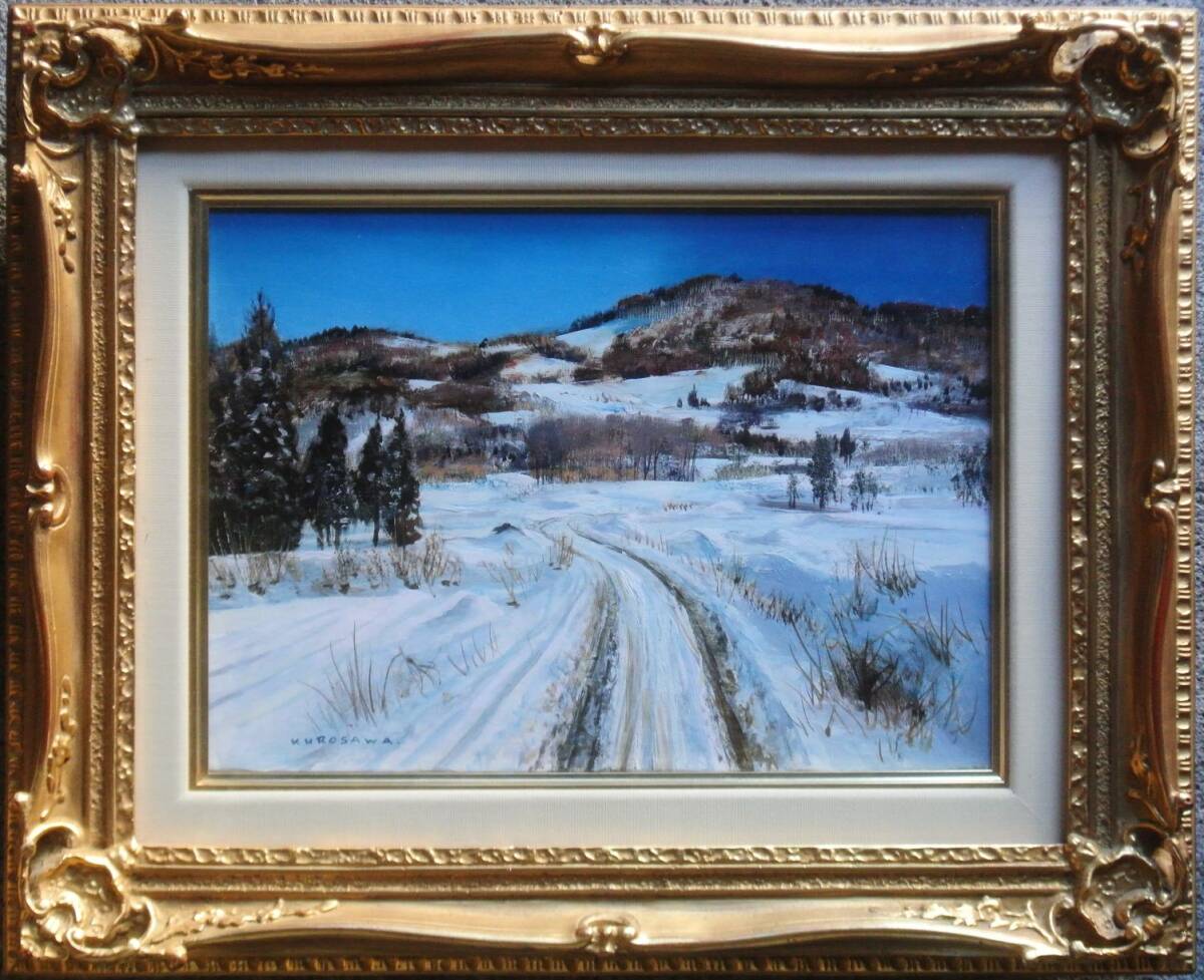 黒沢信男「山麓雪道」油彩画 4号 箱付 真作保証