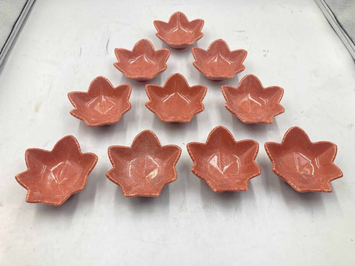 - 赤楽 京焼 大きめの紅葉の珍味入れ 10客 日本料理 懐石料理 刺身皿 前菜皿 八寸皿 京焼