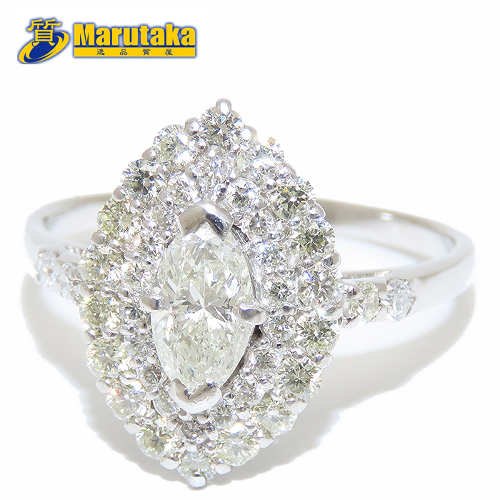 - マーキスカット ダイヤモンド リング 21号 鑑別書 0.70ct 0.95ct 指輪 プラチナ メレ 逸品質屋 丸高 尼崎 6.5g Platinum