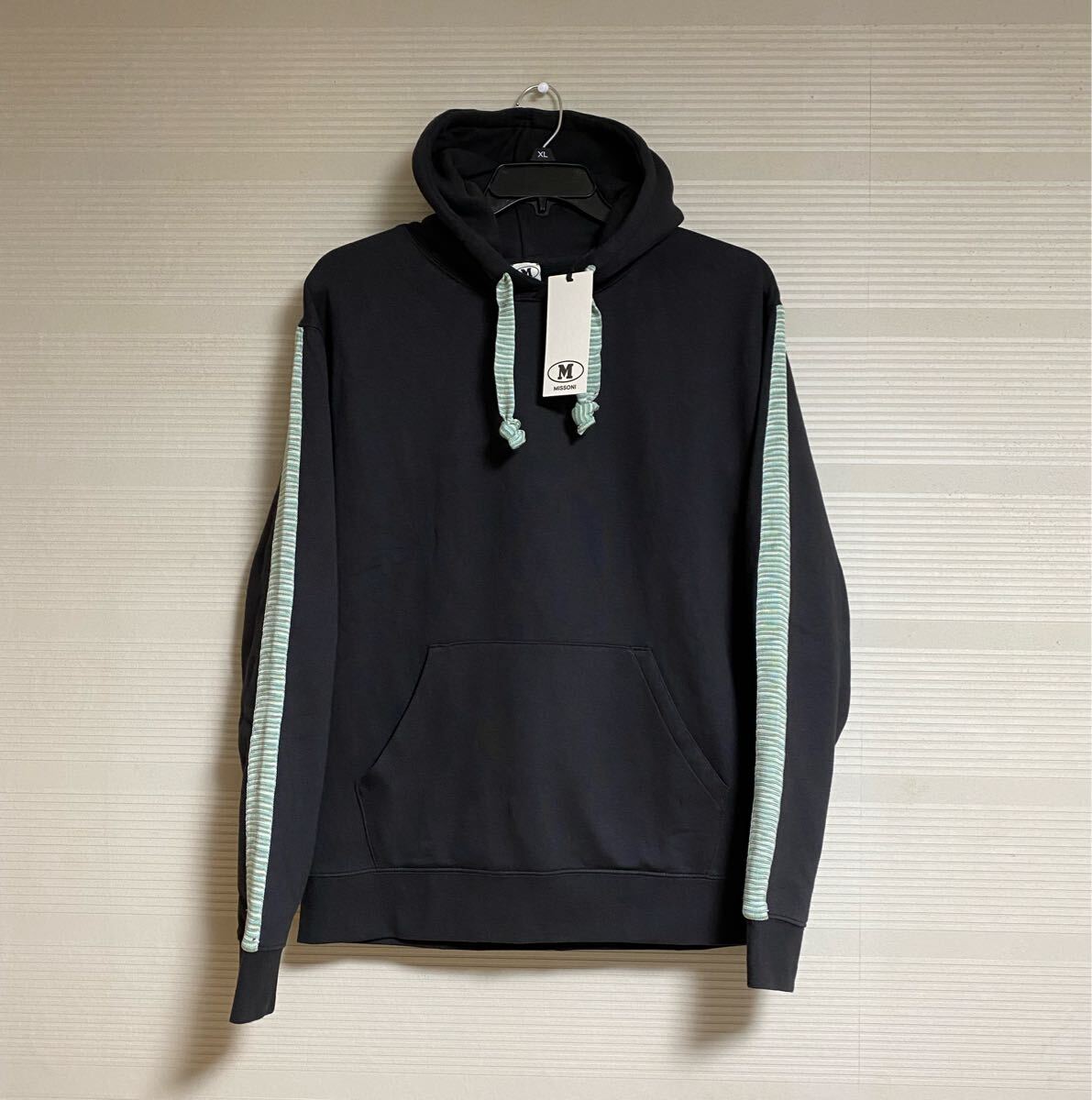 - 新品 本物 正規品 MISSONI メンズ ロゴ パーカー スウェット 黒 L プルオーバー