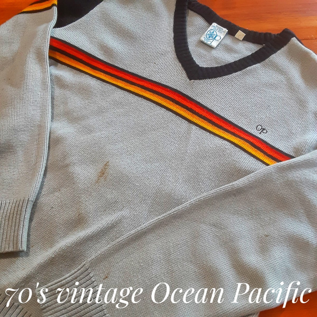 - 最値!70's雪タグ!ヴィンテージ!オールドサーフスタイル!OP(オーシャン パシフィック)希少Vネック ニット セーター!内タグ手縫いリメイク L