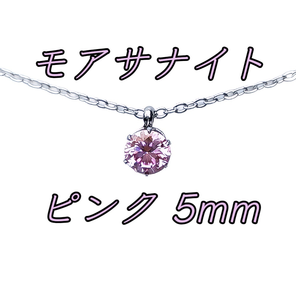 - 輝き抜群 新色 対アレルギー サージカルステンレス ピンク モアサナイト 一粒ネックレス