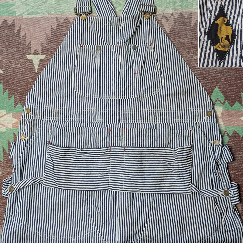 > エプロン ポケット【BUCK BRAND】ダブルニー 40年代 エクスプレス ストライプ オーバーオール 月桂樹ボタン ヒッコリー ビンテージ 30s40s