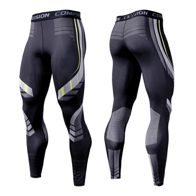 - 【color 02】メンズ ランニングタイツ 速乾性 ジムタイツ トレーニングウェア ロング レギンス 黒×イエロー XLサイズ