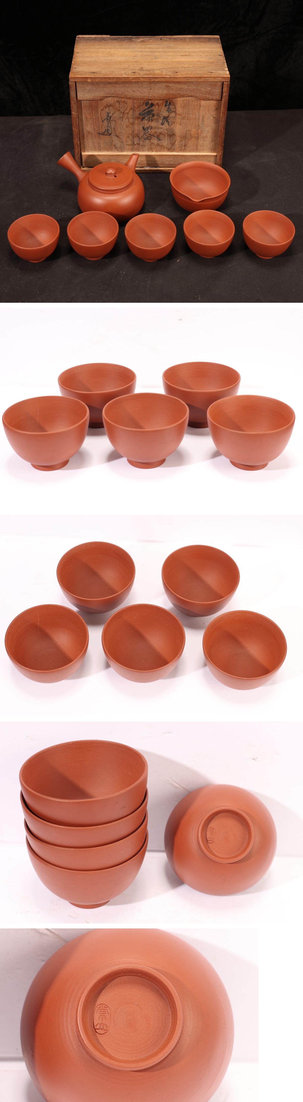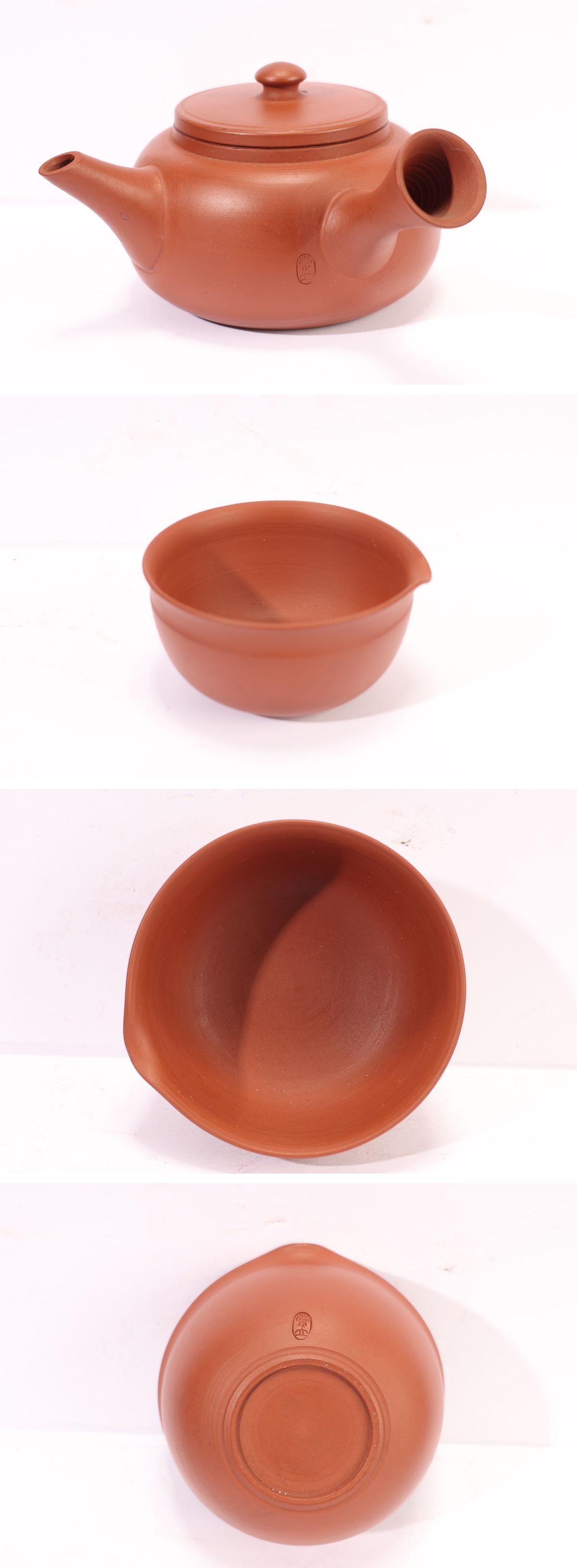 - 【珍品堂】1円から X56-E3 常滑焼 常山作 朱泥 在銘 茶器 急須 湯呑みセット 茶道具 茶器 古美術 骨董品