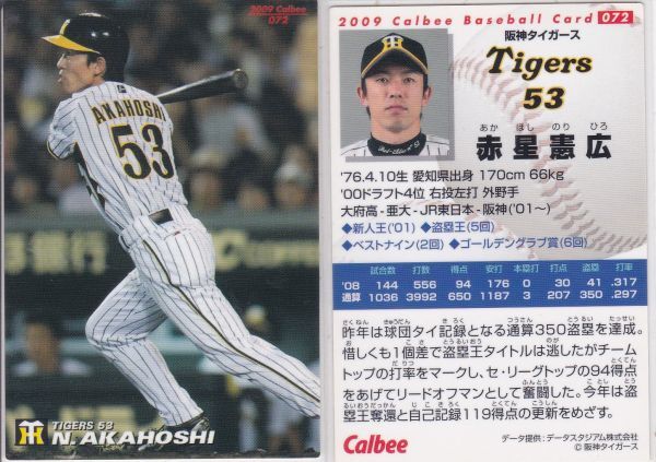 - ●2009カルビー【赤星 憲広】 BASEBALL CARD No.072:阪神 R4