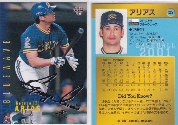 > ●2001BBM/1st 【アリアス】 サインパラレル No.229:ORIX R6
