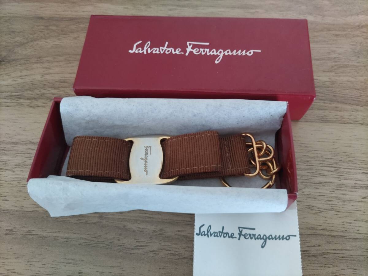 - 即決◆Salvatore ferragamo◆フェラガモキーホルダー☆リボンキャメル☆