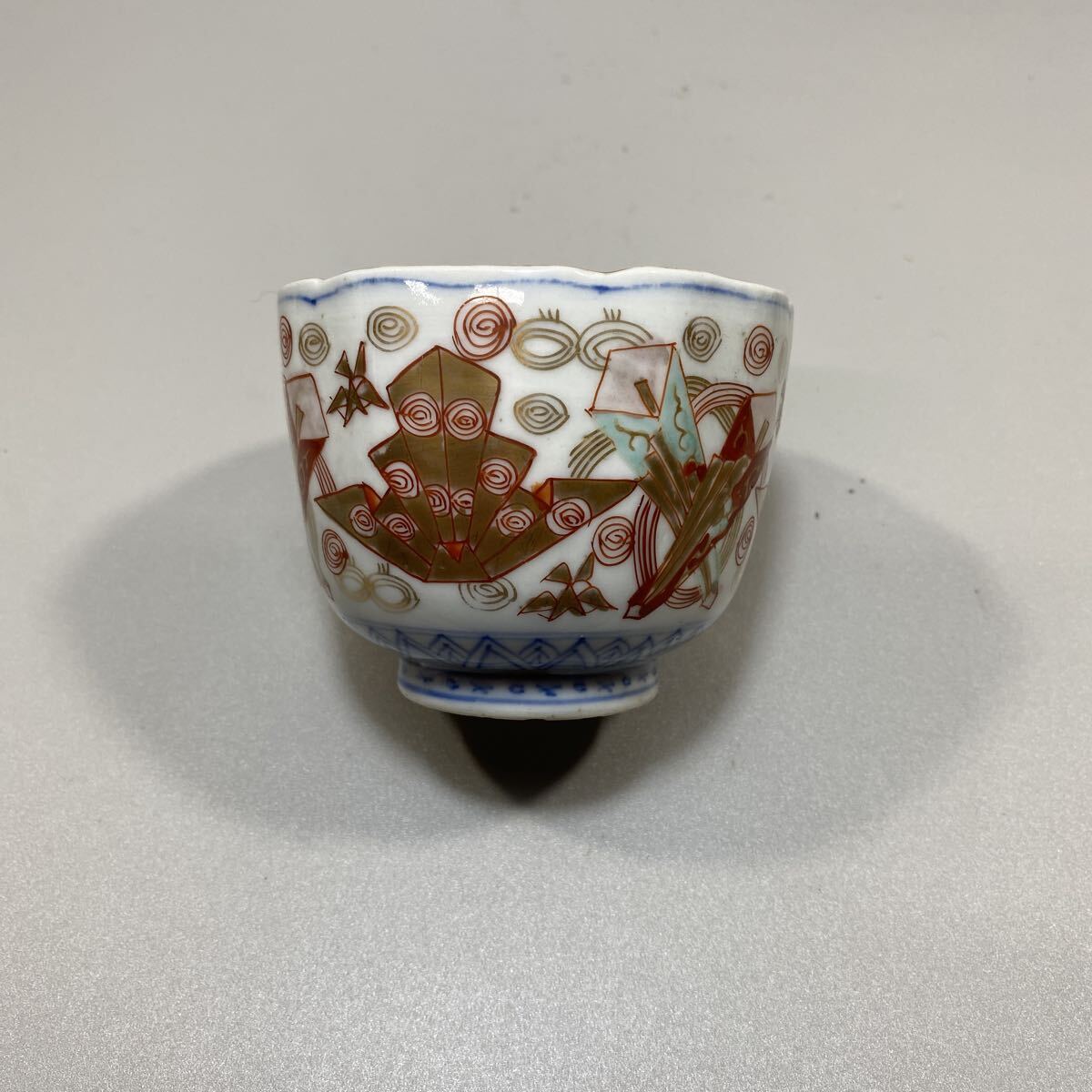 - [猫]1,000円〜スタート 色絵熨斗文中猪口