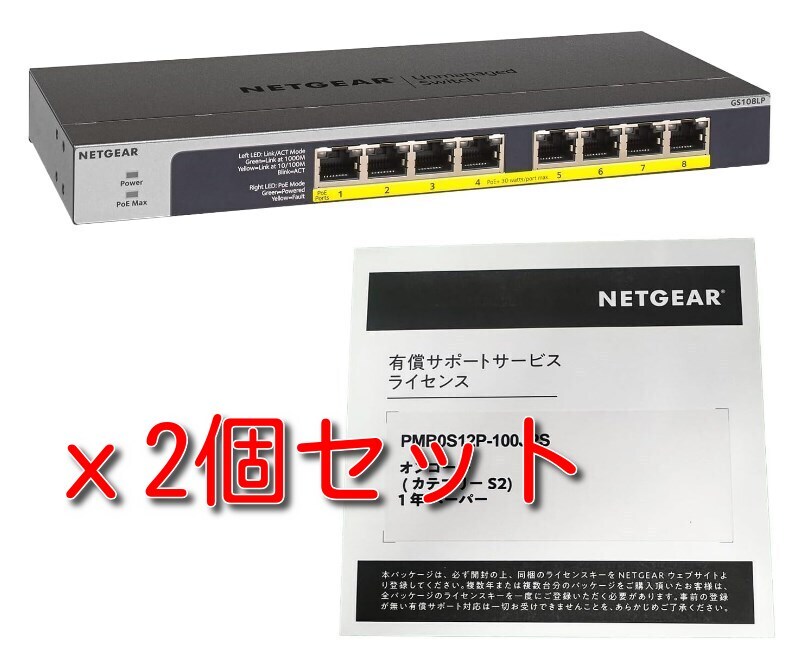 > 【2個セット】 NETGEAR GS108LP スイッチングハブ 8ポート 1Gbps PoE+対応 60W + 有償サポートライセンス1年