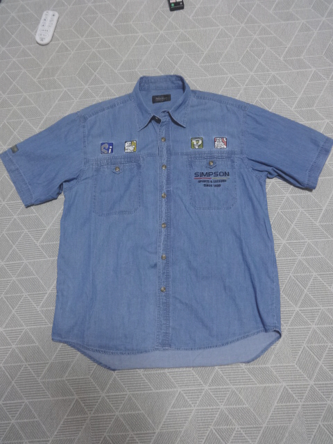 > メンズ SIMPSON シンプソン 豪華刺 半袖ダンガリーシャツ M ネイビー 紺 インディゴ デニム シャンブレー サイズ:M