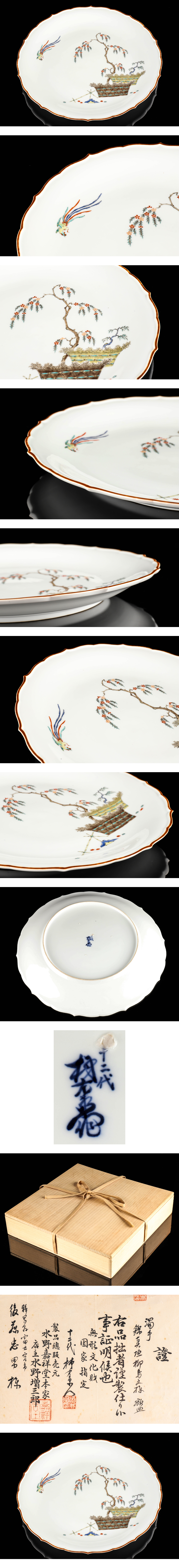 > 【流】十二代 酒井田柿右衛門 錦真垣柳鳥文様 飾皿 大皿 証明書付 箱付 UC267