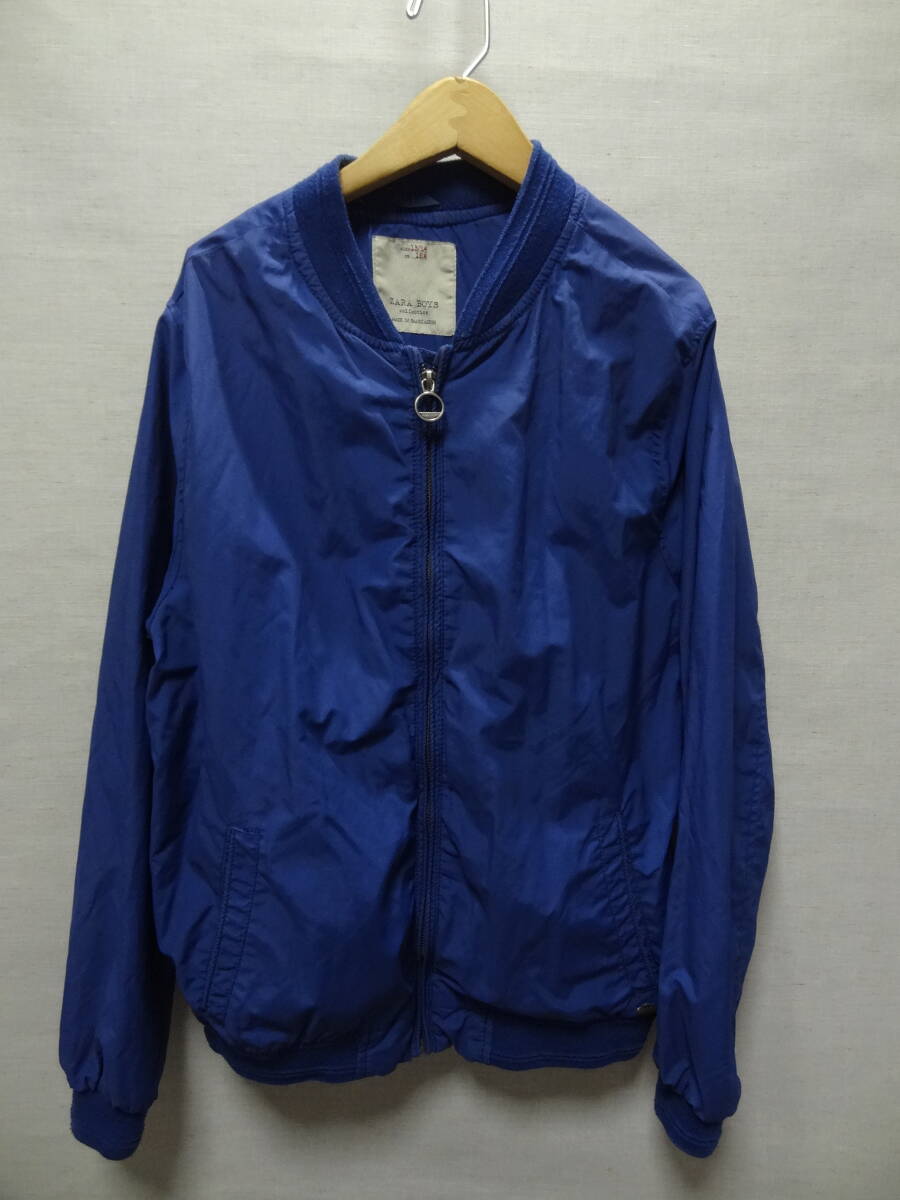 > 全国送料無料 ザラ ZARA BOYS 子供服キッズ男の子 綿55%ナイロン45%素材 青色 MA-1タイプ中綿無し1枚物ジャケット 160(164/13-14)