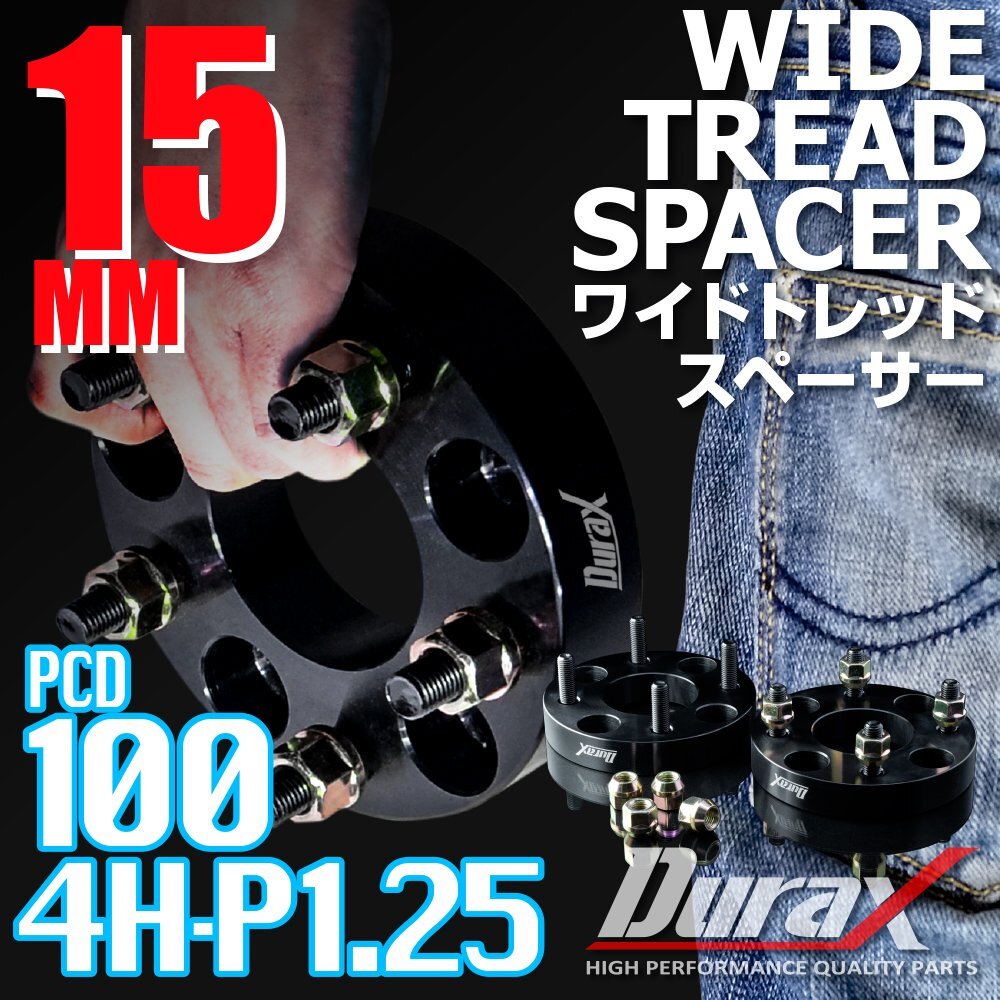 > DURAX ワイドトレッドスペーサー 15mm PCD100 4H P1.25 ステッカー付 ブラック 2枚 ホイール スペーサー ワイトレ 日産 スズキ スバル