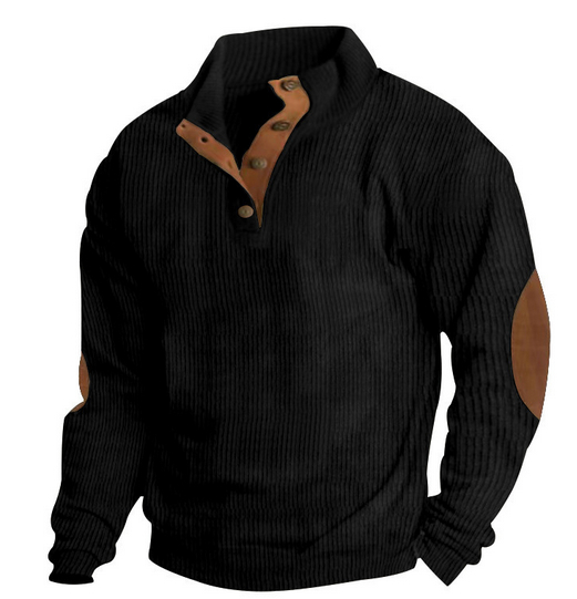 - 人気品 トレーナー メンズ 長袖 ハーフボタン エルボーパッチ トップス ゴルフウェア 無地トレーナー 長袖トレーナー 春秋 黒色 多色 S~5XL