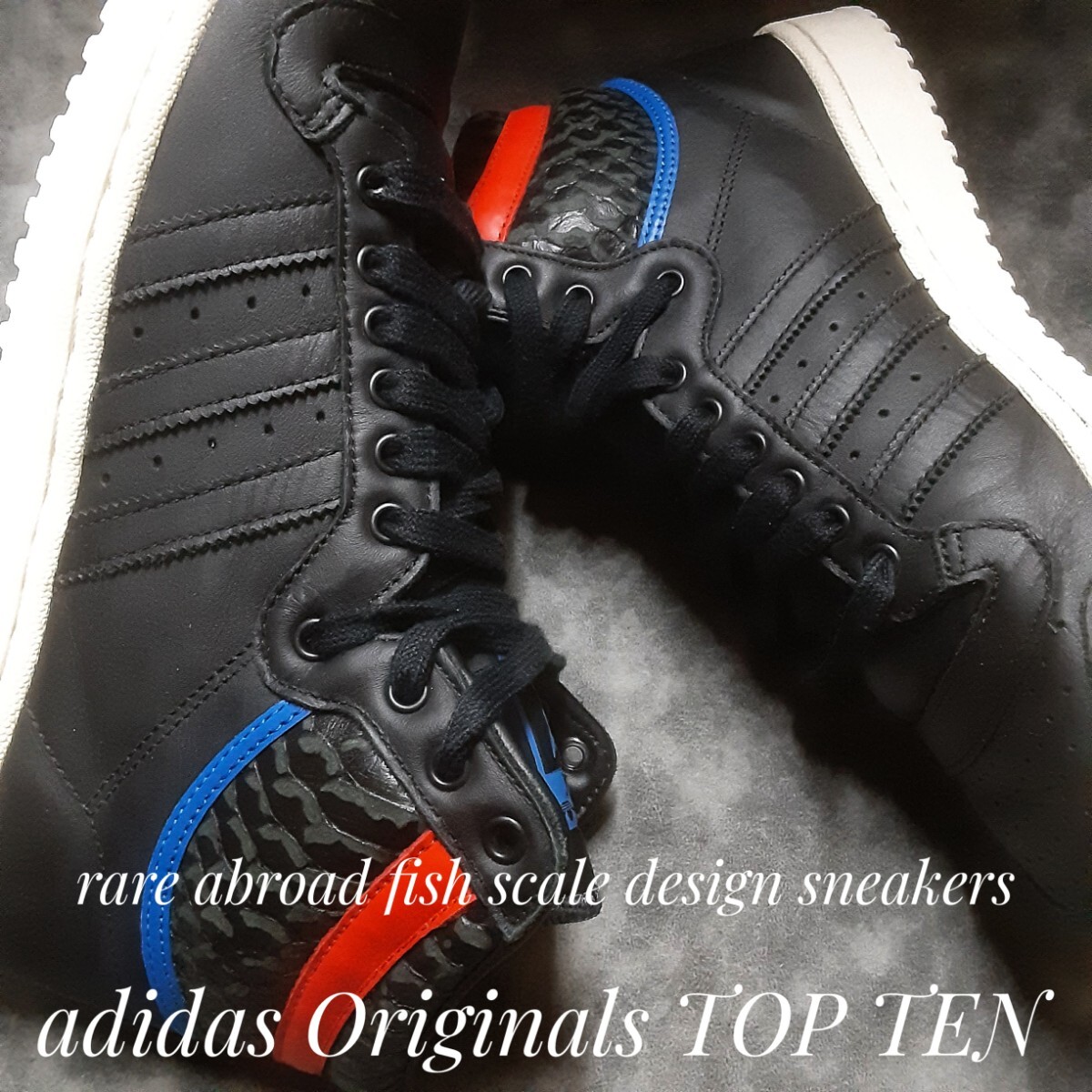 > 最値!15年製!超希少海外!フィッシュスケールデザイン!アディダス オリジナルス トップテン高級レザー スニーカー!ブラック!黒赤青白 27cm