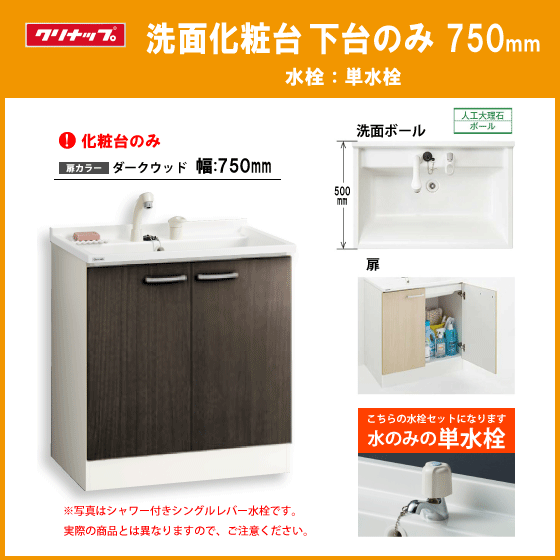 - 洗面化粧台 下台のみ(ミラー部なし) 単水栓 幅:750mm BGAL75TNTEW クリナップ BGAシリーズ