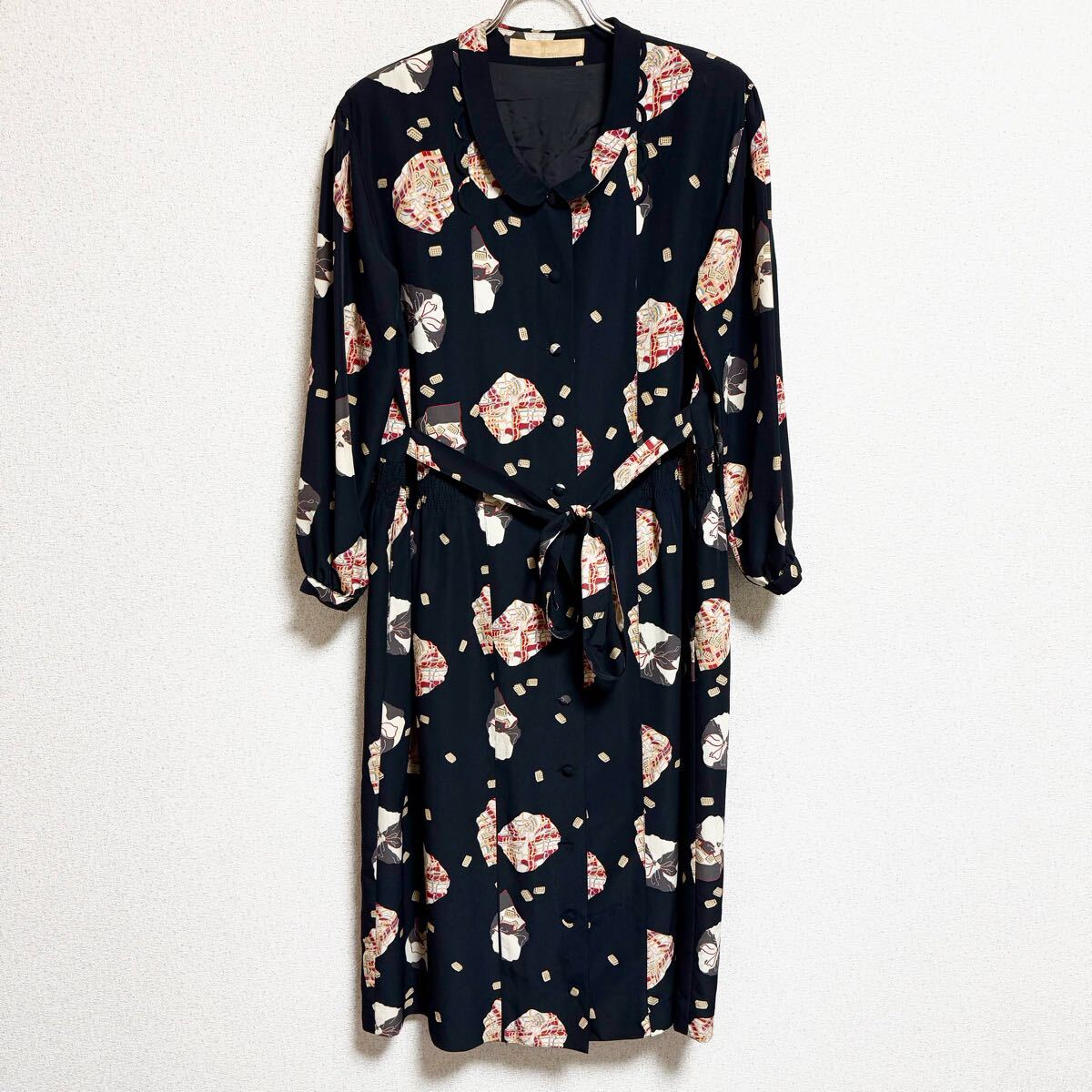 > PINK HOUSE ピンクハウス 長袖ワンピース ロングワンピース ロングスカート 総柄 ブラック系 レディース サイズ L相当 *AO