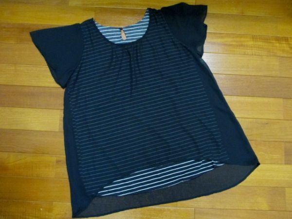 - ★重ね着風★ ストライプ&ブラック シフォンカットソー M