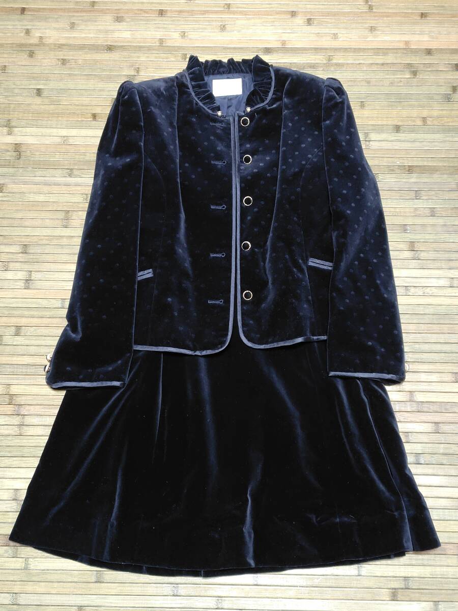 > 03*【中古美品】*REGINA レジーナ ベルベット生地が豪華 フォーマルスーツ スカート ジャケット ブラック レディース (株)キング 送料無料