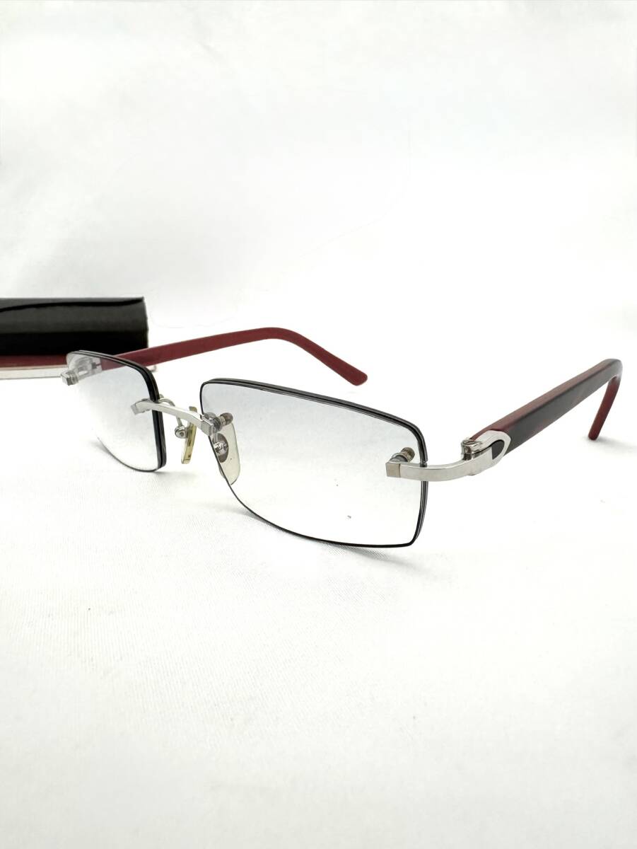 - 7I2808【本物保証】カルティエ ツーポイント メガネ 眼鏡 リムレス 縁なし レッド ブラック シルバー Cartier
