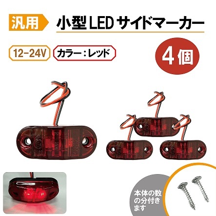 - 汎用 LEDサイドマーカー レッド 4個 路肩灯 車幅灯 車高灯 バスマーカー 赤 ウインカー 12V / 24V トラック トレーラー 流用 定形外送込