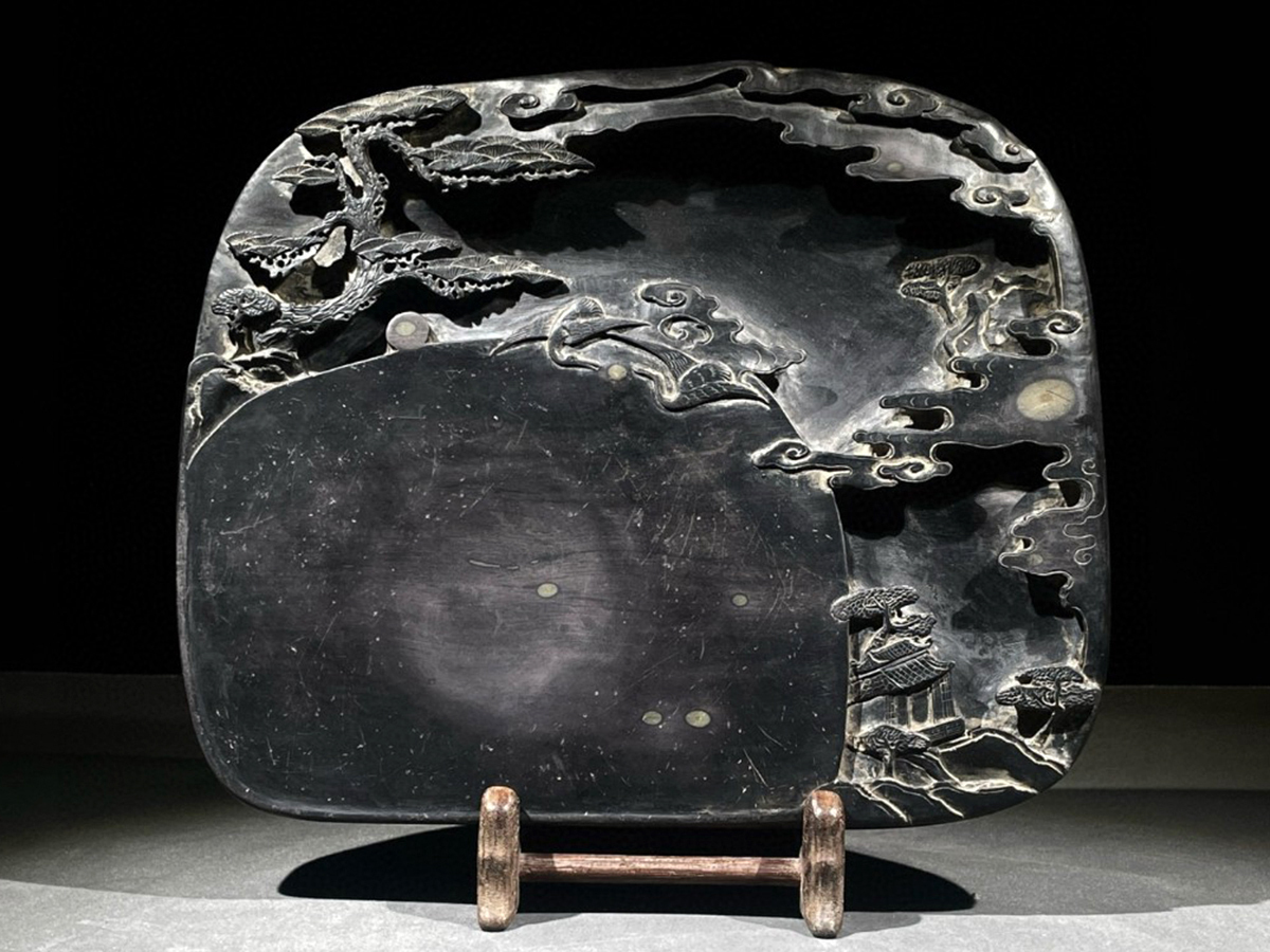 - ▽鴻▽清時代 在銘 端石彫 松鶴延年紋硯 端渓硯 唐硯 墨寶 書道具 時代物 中国古美術 骨董品