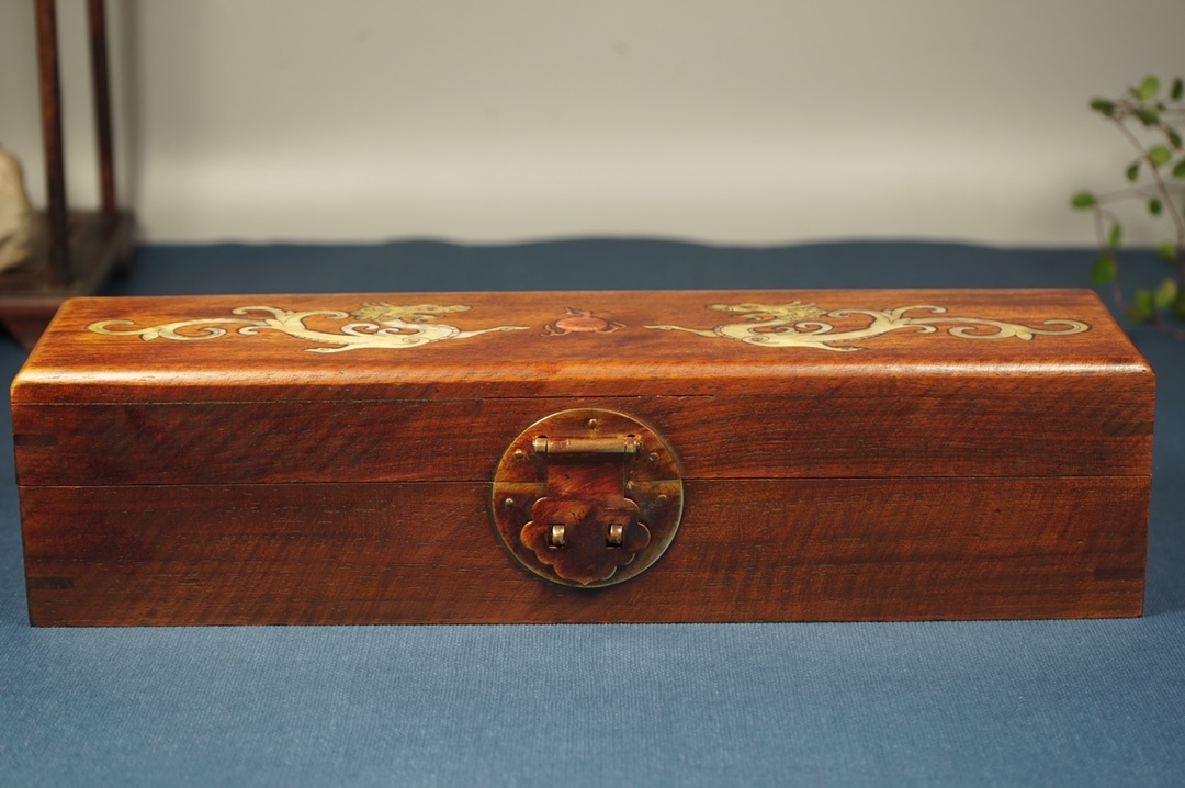 - 『館蔵珍品 花梨木 細密彫 貝殼嵌 雙龍戲珠 盒子 首飾盒 置物 賞物』稀少珍蔵品 古賞物 貴重物品 収蔵品 中国古美術 時代物 古董品