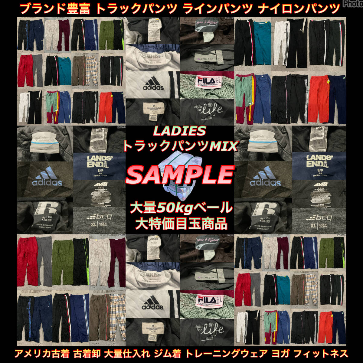 - 【T1469】★大量仕入れ★ アメリカ古着 古着卸 トラックパンツMIX大量50kgベール 目玉商品 ブランド豊富 ラインパンツ ナイロンパンツ