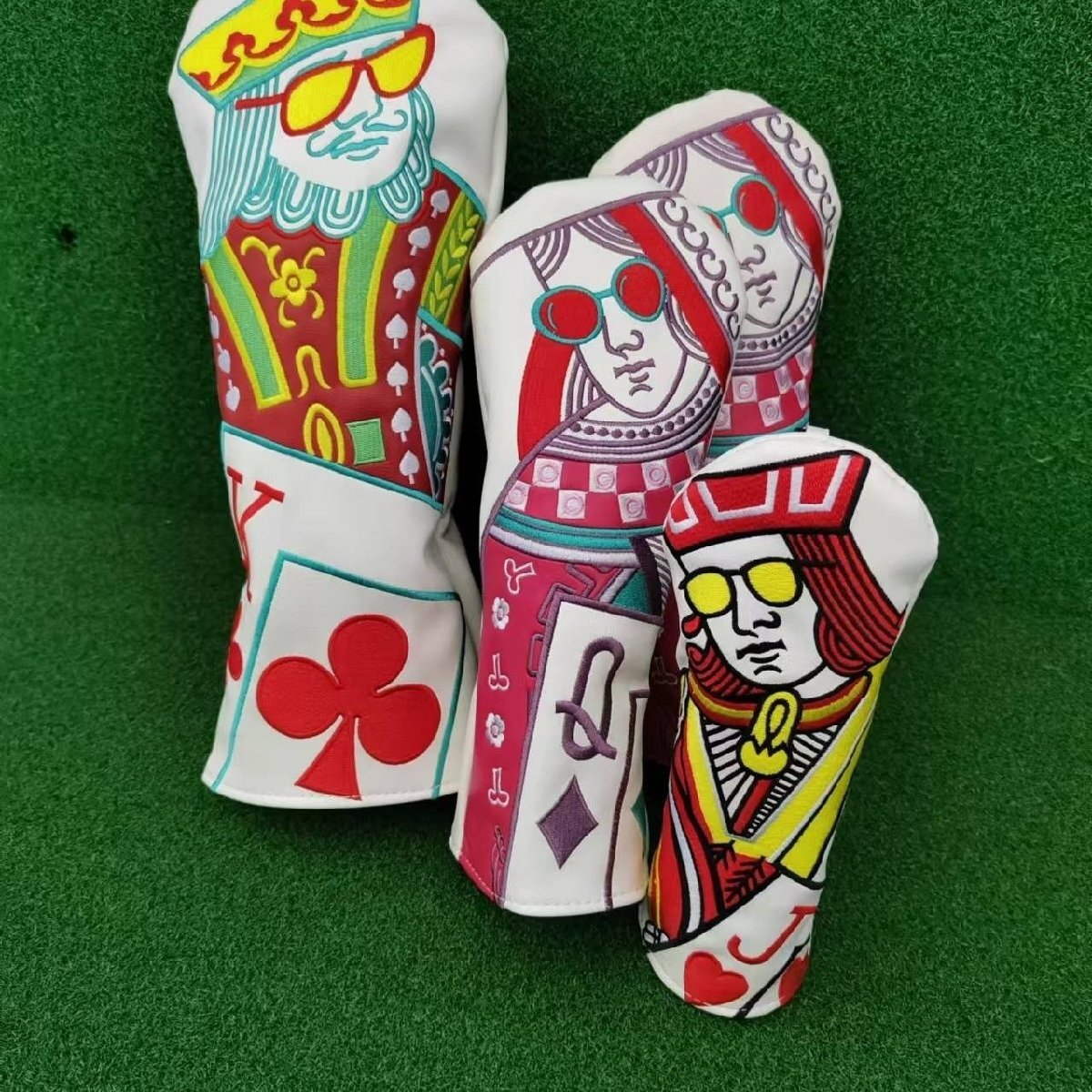 - 送料無料 4点セット ゴルフ ヘッドカバー 3.5共通FW DW UT ポーカー ジャック クイーン キング パター ドライバー gf325