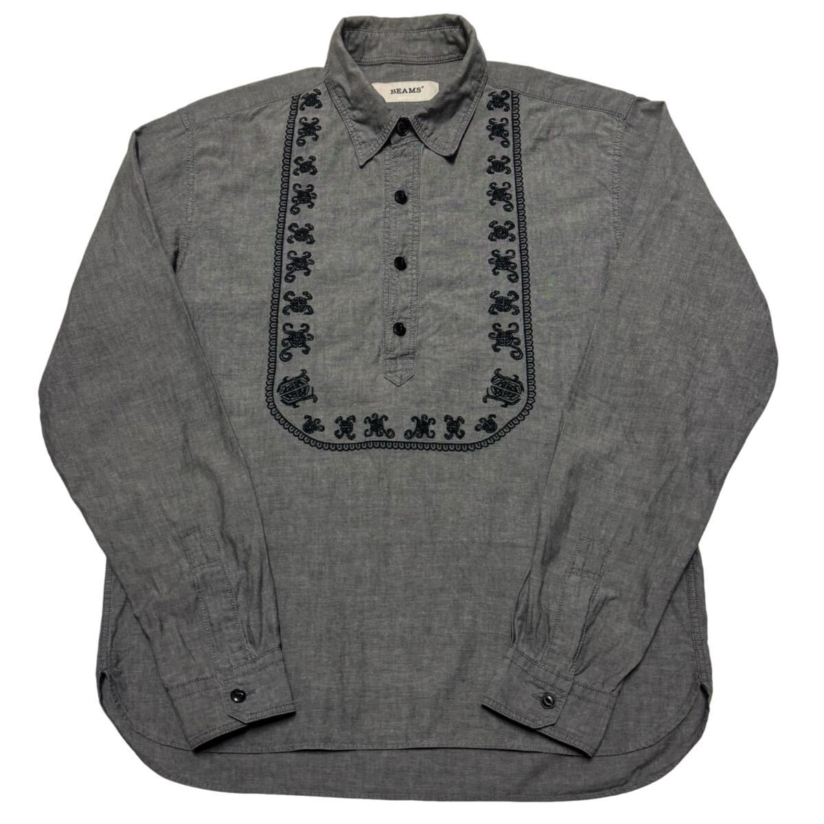 - BEAMS ビームス 長袖プルオーバーシャツ 刺繍 M