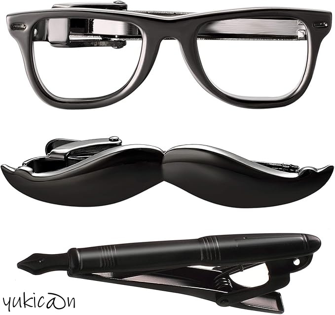 - ネクタイピン 3本セット ヒゲ メガネ 万年筆 洒落メンズ シルバー ブラック おしゃれ おもしろ 休日 お祝い 結婚式 ダンス プレゼント