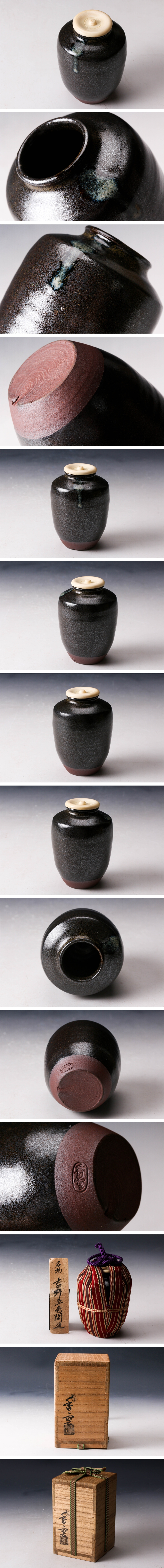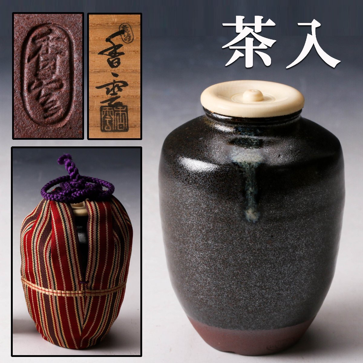 【佳香】宮川香雲 茶入 共箱 仕覆(吉野五色間道) 茶道具 本物保証