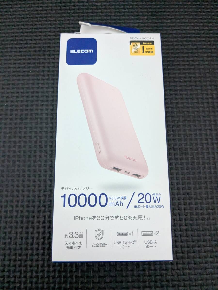 > ◎0709u2919 エレコム モバイルバッテリー 大容量 10000mAh USB PD対応 20W Type-C×1 USB-A×2 ケーブル付属 ピンク DE-C44-10000PN