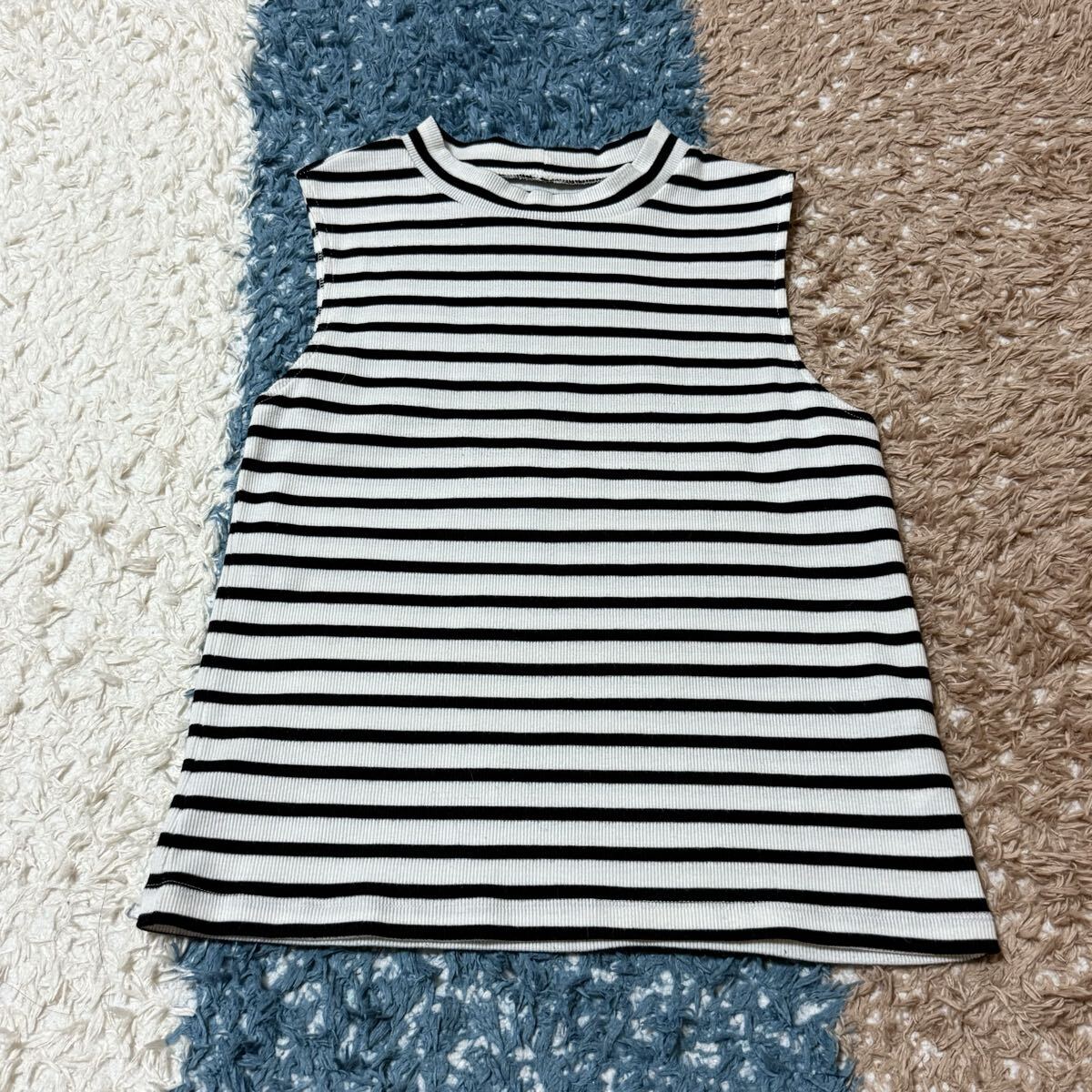 - GU ボーダーリブニットタンクトップ ノースリーブ