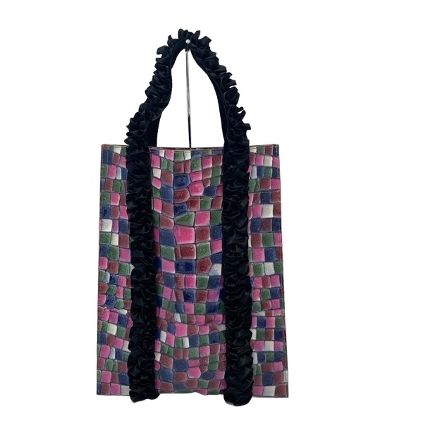 - アタオ ATAO トートバッグ - レザー ピンク×黒×マルチ 型押し加工/フリル/マチなし バッグ