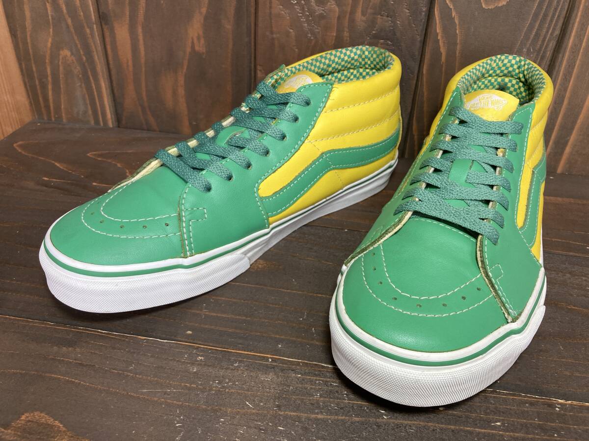 > ★VANS バンズ US企画 SK8 MID スケート ミッド 緑×黄 オールレザー 28.0cm 美品 Used 検 オールドスクール ハーフキャブ