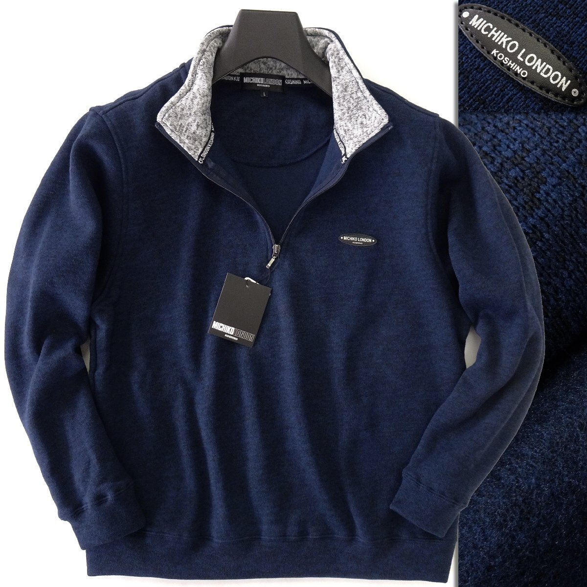 > 新品 ミチコロンドン 裏起毛 ニット ハーフジップ プルオーバー L 紺 【ML8W-R551_NA_L】 MICHIKO LONDON 秋冬 フリース トレーナー