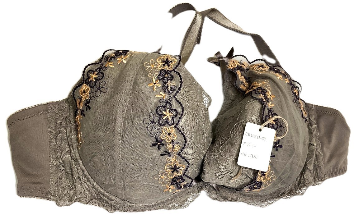 - CR16311-63 IB⑦【特価】新品 大きい ブラジャー H80 1枚 グレー レース 花柄 リボン 脇高 刺しゅう ストレッチ おしゃれ レディース