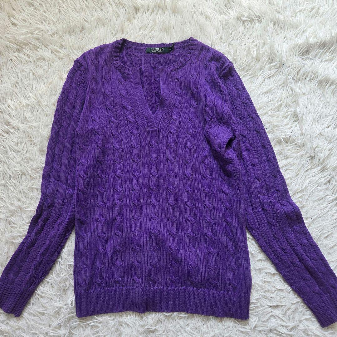 > 良品 ローレンラルフローレン ケーブルニット キーネック S パープル パープル LaurenRalphLauren s